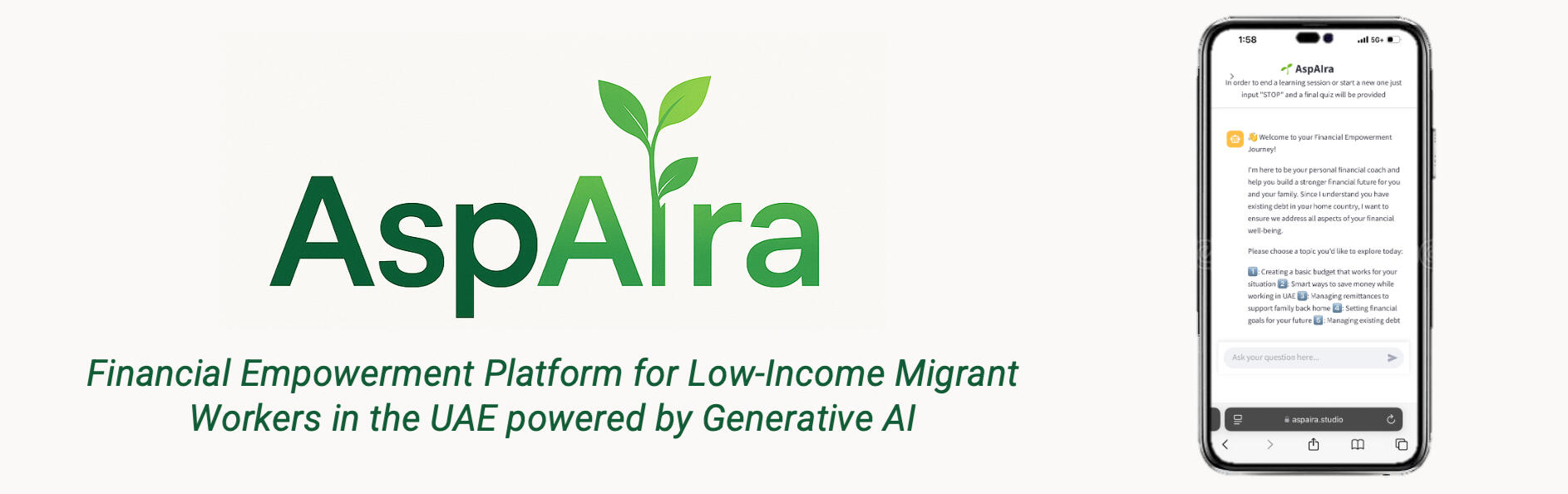For our MVP, we took a focused approach to initially build for Filipino Maids in the UAE.Our field research, including a survey of 26 maids in the UAE, showed that financial literacy was a key priority for this user base. We designed and built a Financial Coach, tackling the Coaching & Education element of our vision for the full Aspaira platform.Leveraging demographic and financial information from user profile inputs, our user facing application uses Agentic AI and Gen AI techniques to walk users through dynamic, personalized financial education sessions.We also built a Multi-Judge AI Framework which scores conversations across criteria enabling robust, unbiased evaluation. These insights are then used to continuously improve the user facing application.